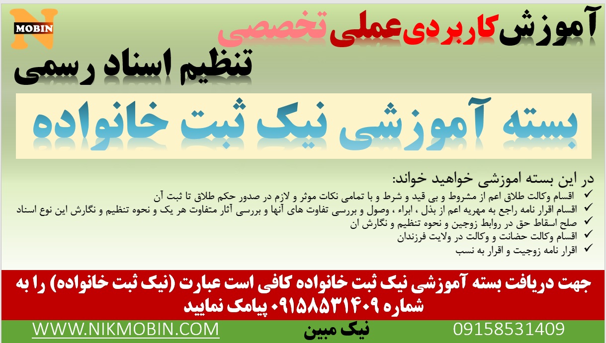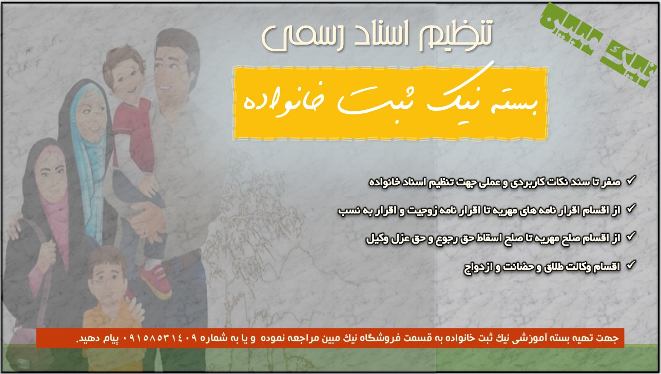 قسمت هایی از مطالب و موضوعات بسته آموزشی نیک ثبت خانواده در فیلم ذیل ارائه شده است