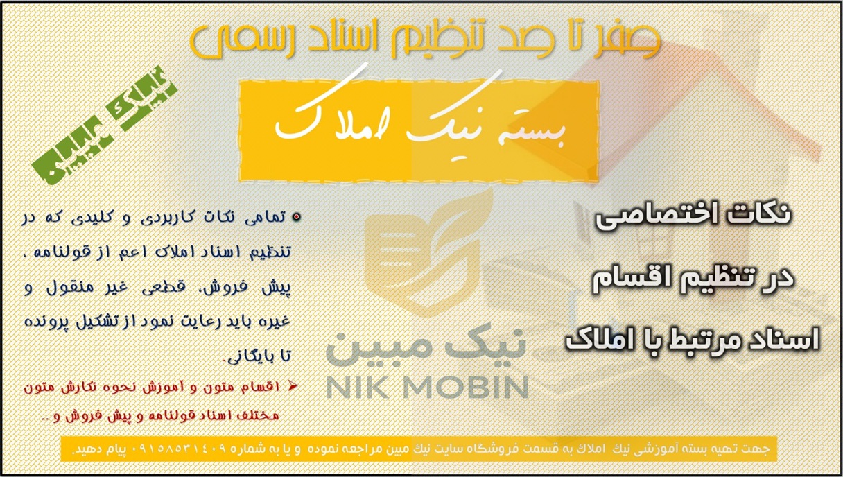 در قسمت انتهایی همین صفحه، قسمت مختصری از فایل های آموزشی نیک املاک جهت آشنایی بیشتر شما عزیزان ارائه شده است.